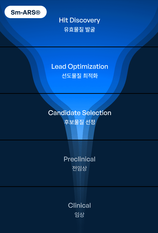 이러한 병목 지점에서 Sm-ARS®는 빠르고 정밀한 후보물질 도출을 통해 연구 효율을 높입니다.
