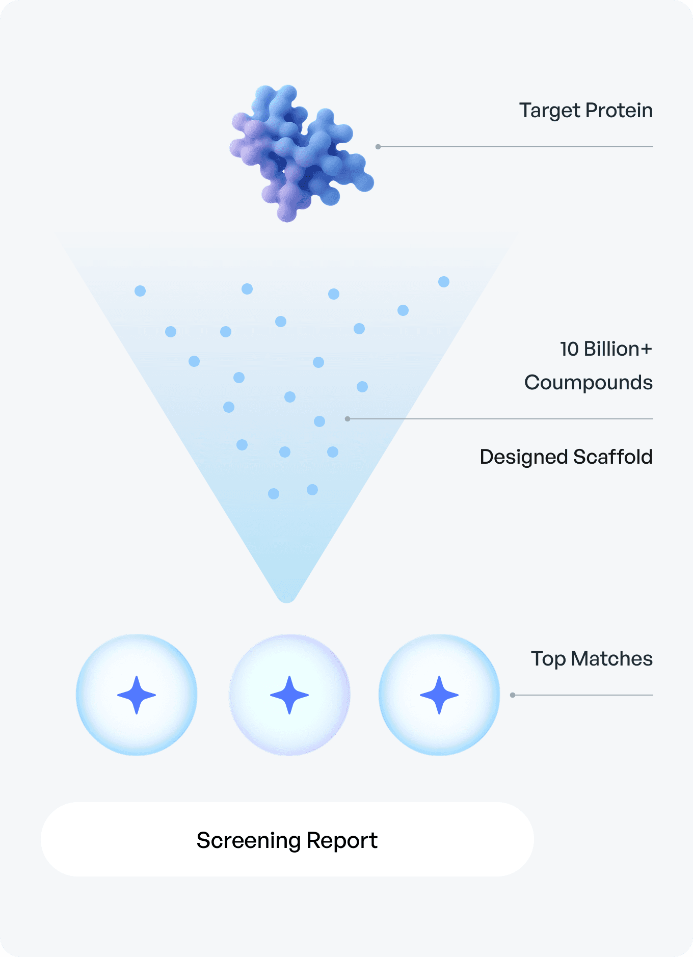 100억 개의 화합물 중 유망한 후보를 DeepMatcher®로 선별합니다.